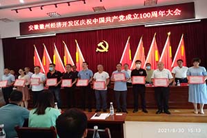 6月30日,公司支部書記馬明海參加徽州開發區慶祝共產黨成立100周年大會。我支部黨員余青云榮獲徽州開發區“優秀共產黨員”榮譽稱號。